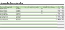 La planilla de excel de ausencia de empleados es una simple hoja de cálculo que permite registrar cada vez que un empleado se ausenta por la causa que sea (vacaciones, día de trámite, etc) y así tener en cuenta los días que le quedan para tomarse.